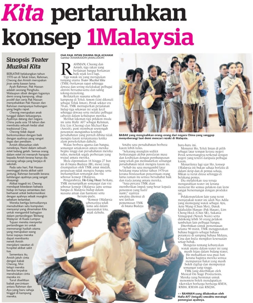 KUALA LUMPUR, 29 JUN 2010: Sewaktu menjayakan teater muzikal Kita di Istana Budaya baru-baru ini, juara Akademi Fantasia 7 (AF7), Mohd Hafiz Suip atau Hafiz, 20, yang diangkat sebagai hero teater berkenaan telah ditimpa kemalanganhingga menyebabkan pergelangan tangan kanannya patah.